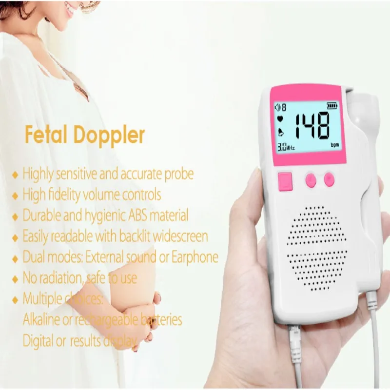 1. Надежное обнаружение частоты сердечных сокращений плода через (сердцебиение плода) двухцветный ЖК-дисплей и цветной TFT дисплей для сбора сигналов сердечного ритма плода во время беременности