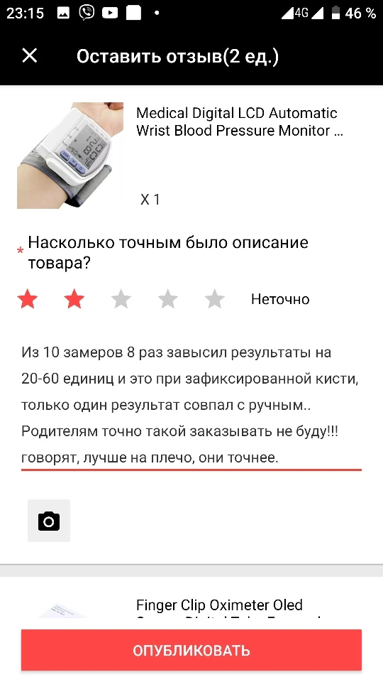 Из 10 замеров 8 раз завысил результаты на 20-60 единиц и это при зафиксированной кисти, только один результат совпал с ручным.. Родителям точно такой заказывать не буду!!! говорят, лучше на плечо, они точнее.
