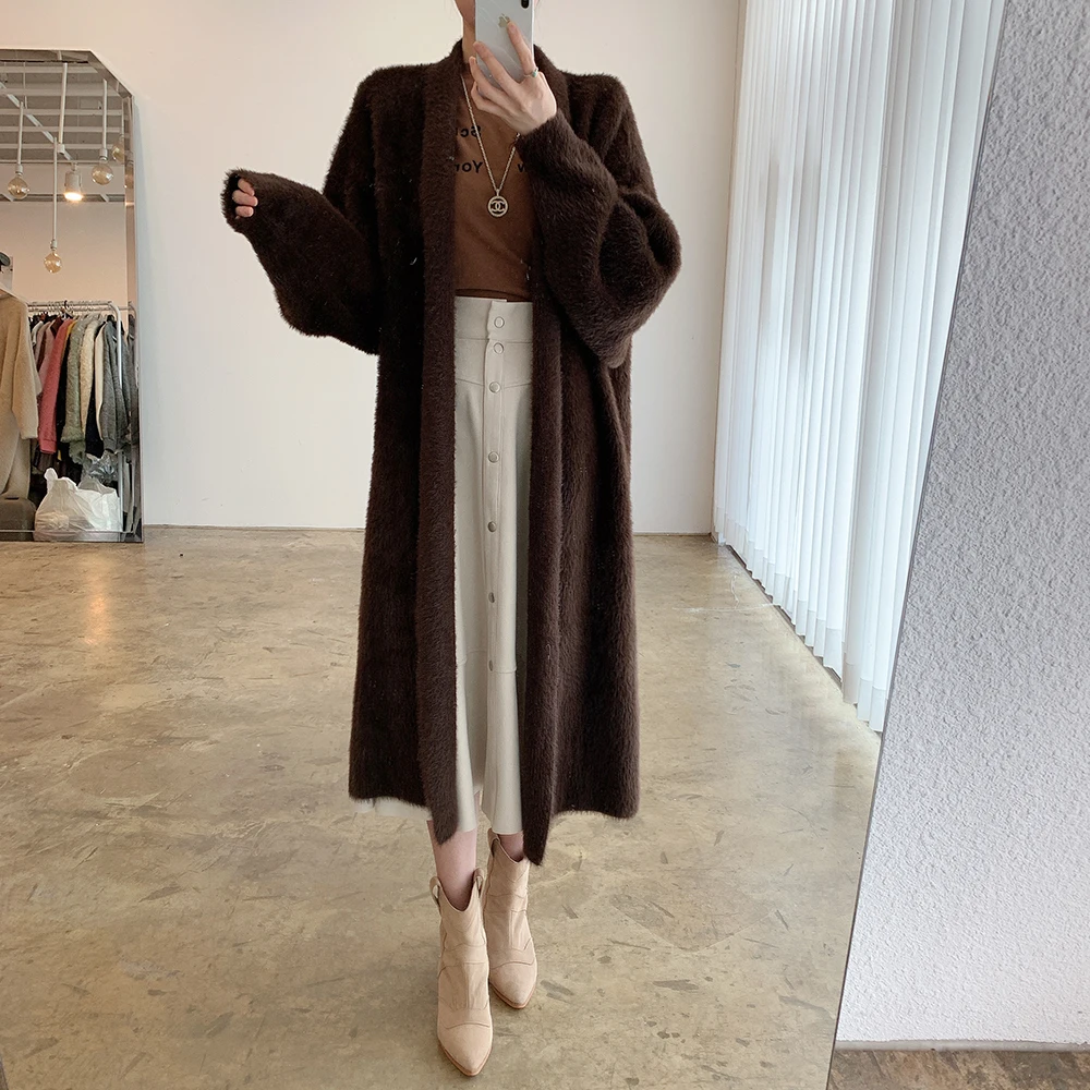 Женский кардиган из искусственной норки и кашемира, осенне-зимний мягкий Свободный вязаный кардиган, верхняя одежда, офисный женский элегантный вязаный свитер