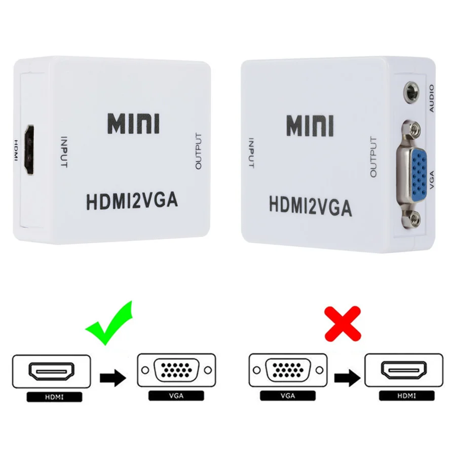 HDMI-совместимый Введение:Mini HDMI-совместимый с VGA видеоконвертер высокой четкости, который преобразует HDMI-совместимый цифровой сигнал в VGA аналоговый сигнал и аналоговый аудиосигнал. HDMI-совместимое соединение сигналов для PS3 для XBOX360, Blue-ray DVD, HD телеприставки, CRT/светодиодный дисплей и т. Д. Вы можете легко смотреть hd-видео на обычном телевизоре без интерфейса, совместимого с HDMI. Особенности:1. Нет необходимости устанавливать драйверы, портативный, гибкий, подключи и работай2. Низкая мощность, нет необходимости в источнике питания3. Вывод аудио синхронизации с видео4. Высокая пропускная способность поддержка 1920x1080 @ 60 ГцХарактеристики:1. Входной порт: HDMI-совместимый с женским2. Выход Порты и разъёмы: VGA Женский и 3,5 мм Jack3. Размеры (мм): 66(D)x55(W)x20(H)4. Цвет: белыйПримечание:Этот преобразователь не двунаправленный. Он преобразует только HDMI-совместимый с VGA.
