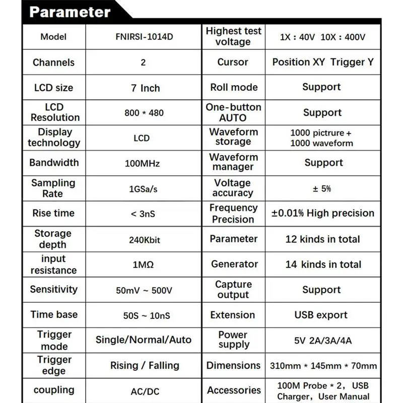 Цифровой осциллограф FNIRSI 1014D, двухканальный входной генератор сигналов, osiloскоп, цифровая полоса пропускания Ana-log, частота дискретизации 1 Гвыбс