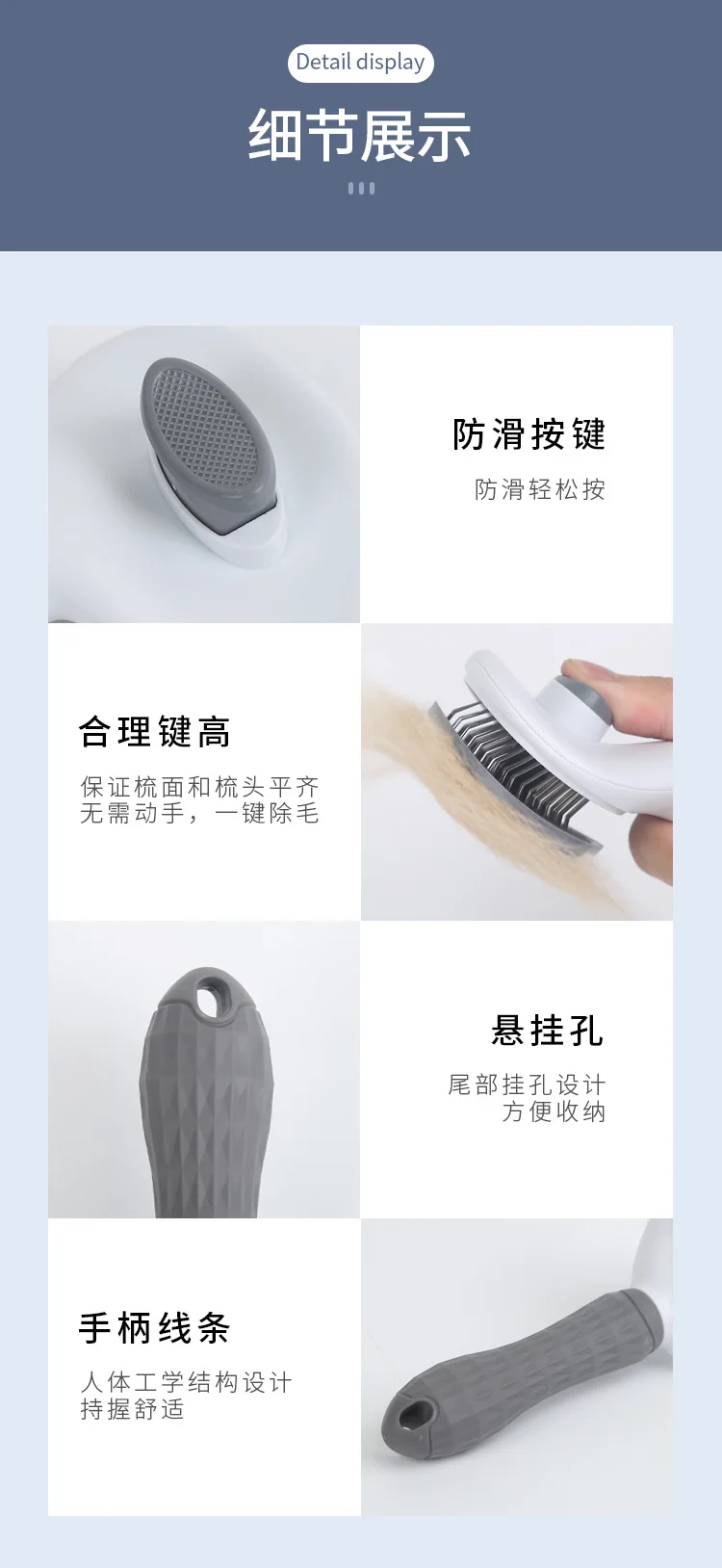 100% новый и высокое качествоУдобные, мягкие и не повредят кожу.Нескользящая ручка будет удобно держать.Расческа из нержавеющей стали и защитный наконечник на расческе безопасны для домашних животных.Подходит для собак или кошек.Не только удаление волос, но и массаж.Уменьшает выпадение волос и предотвращает завязывание узлов.Улучшает кровообращение.