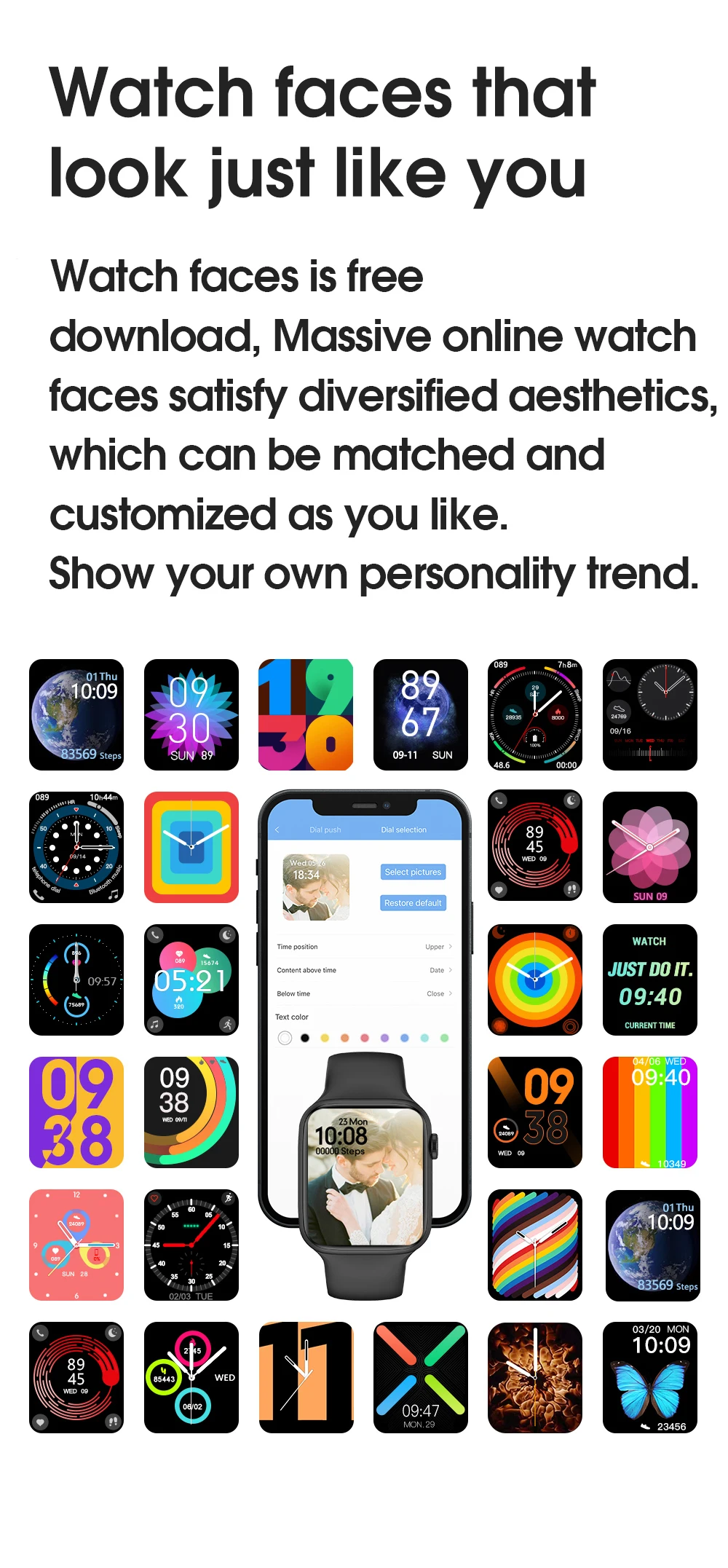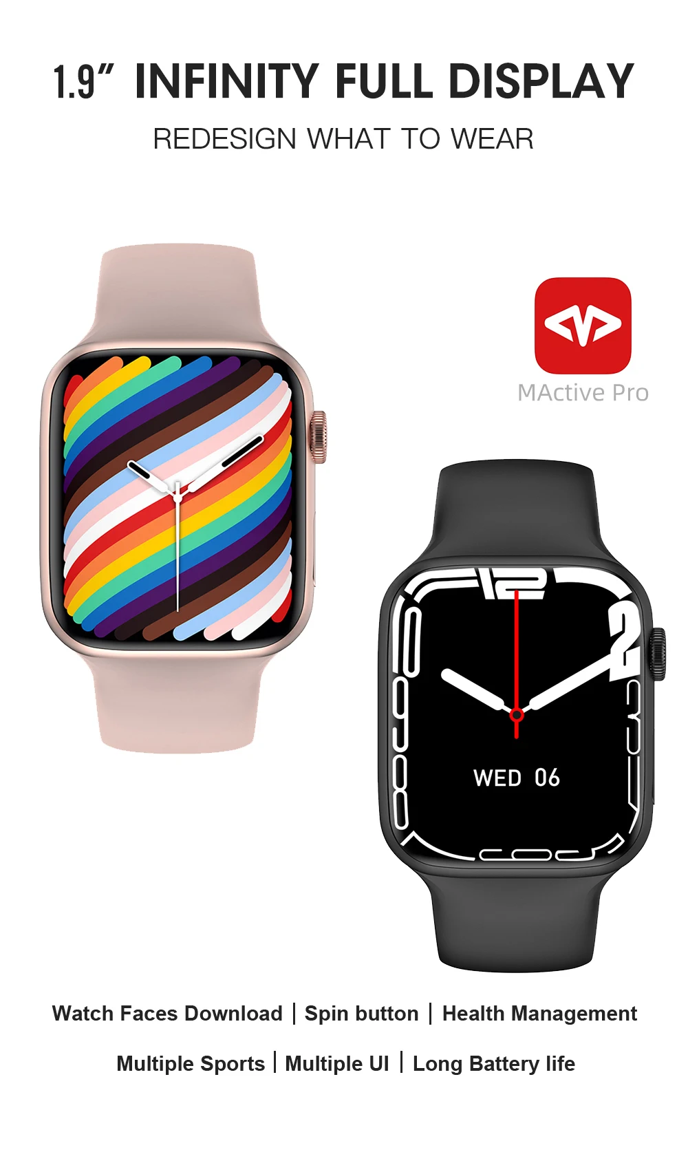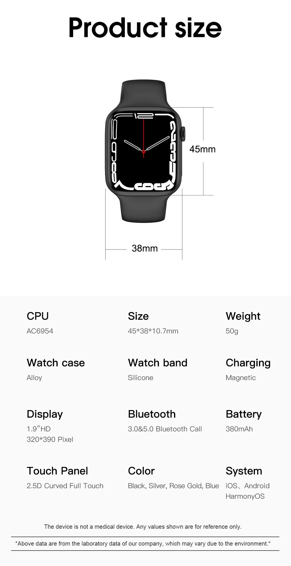 Параметры продукта:1. Размер часов: 45 мм2. Экран Размер: 1,9 дюймов бесконечное Экран3. Языки: китайский, английский (по умолчанию), немецкий, французский, итальянский, испанский, польский, португальский, румынский, русский, арабский, тайский.4. Цвет часов: черный, розовый, белый.5. Батарея: 340 мАч литий-полимерный аккумулятор, более длительный срок службы батареи6.IP68 Водонепроницаемый, пожалуйста, не используйте часы для плавания, дайвинга, купания и сауны!7. Зарядная база: Магнитная ЗарядкаФункции:1. Поддержка функции поворотной кнопки2. Поддержка звонков и приема звонков. Напоминание о сообщениях/входящих звонках (WeChat,SMS,Fackbook,INS,Twitter,Whatsapp...3. Поддержка пользовательских часов4. Поддержка обнаружения сердечного ритма/обнаружения артериального давления/обнаружения кислорода в крови/мониторинга сна и т. Д.5. СонМонитор: запись и анализ состояния сна объективно иНаучно, автоматически открывается с 22:00 каждую ночь, чтобы 8:00На следующий день6.Bluetooth музыкальный плеер/Bluetooth Камера7. Поддержка различных видов 45 мм ремешок обмена8. Другие функции: будильник, калькулятор, остановка, телефонная книга, погода и т. Д.
