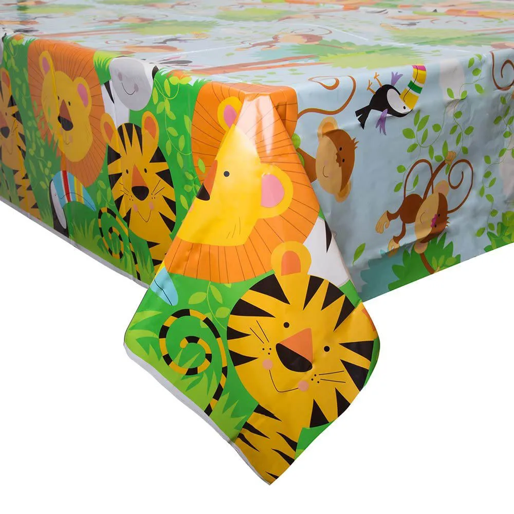 Скатерть одноразовая с изображением лесных животных, сафари в джунглях, тигра, зебры, украшение для 1-го дня рождения, леопардовая скатерть