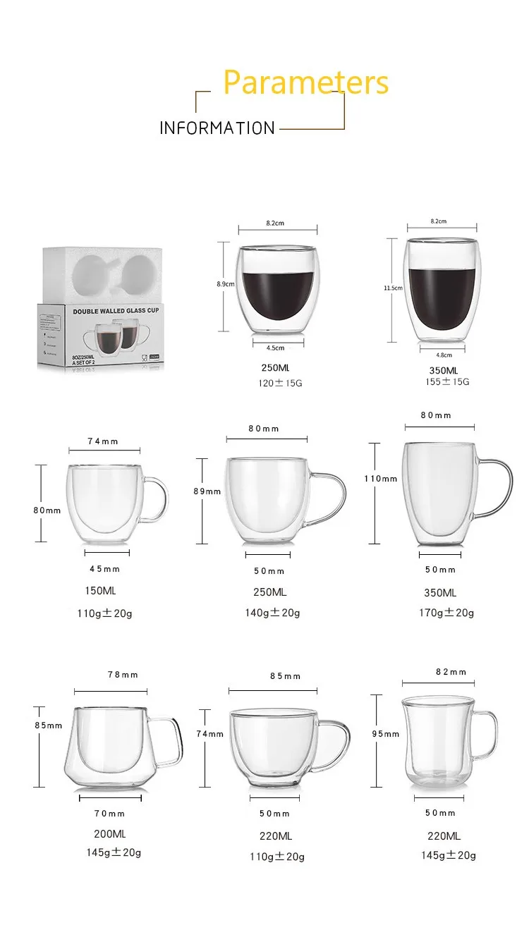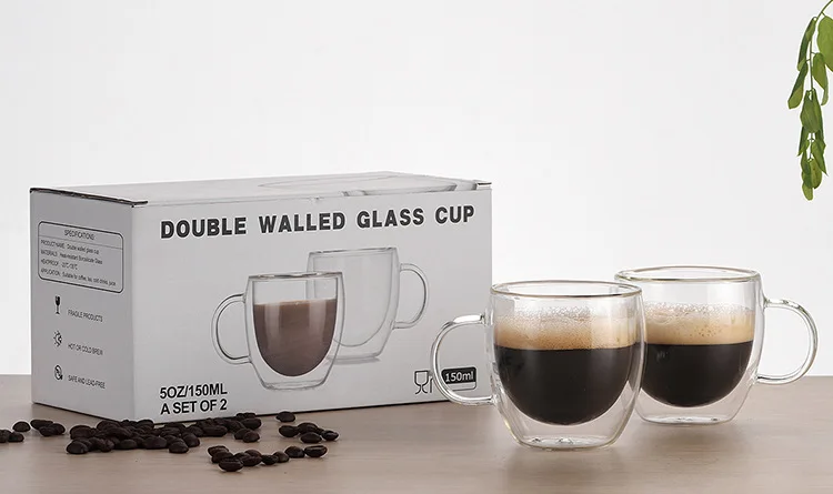 2 шт.лот Ins Горячие кофейные чашки с двойными стенками разнообразный дизайн устойчивые к холоду термостойкие стеклянные кружки для молока кофе сока упаковка с защитой от повреждений