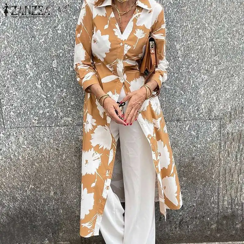 Осенняя блузка ZANZEA, Женская богемная длинная рубашка с цветочным...
