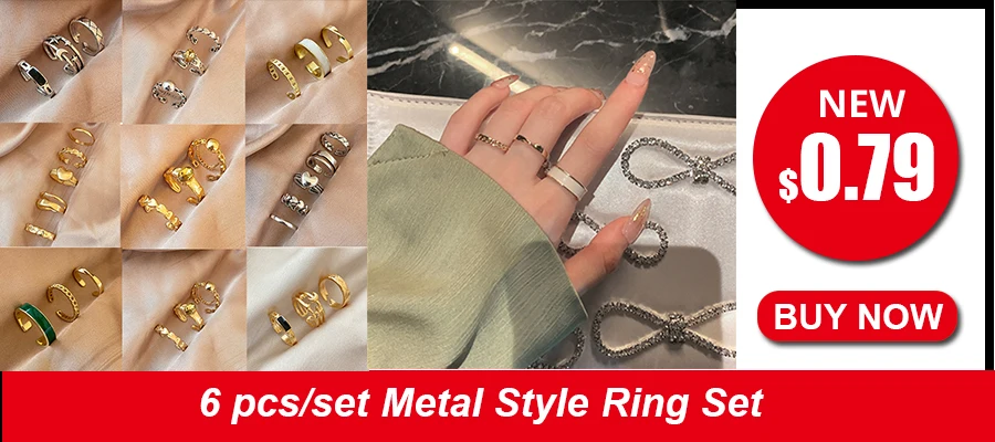 Модный комплект колец с покрытием для женщин в стиле панк для девуш...