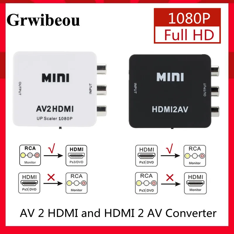 Адаптер-скалер GRWIBEOU 1080P HDMI-совместимый с AV, композитный преобразователь видео HDMI-совместимый с RCA CVSB LR видео Mini HD2AV