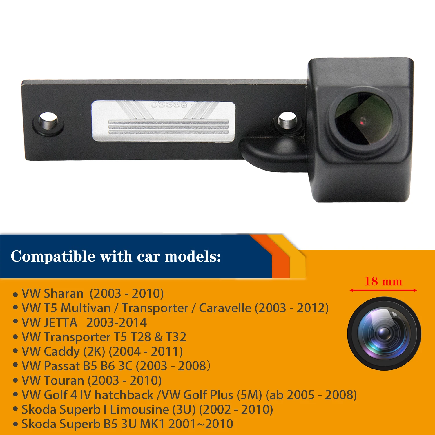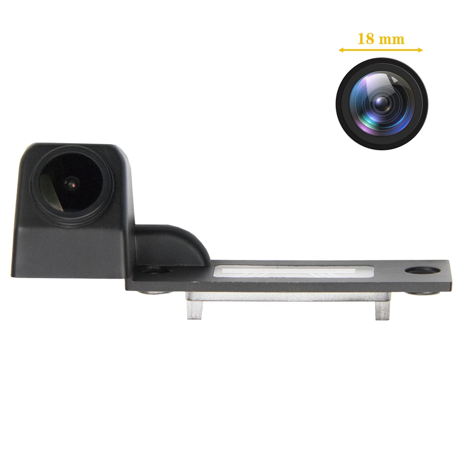 • Модная эксклюзивная камера большого размера 18 мм• С функцией переключения правил парковки• Установка камеры сзади визуально незаметна и очень незаметна• Расширенная видимость позади транспортного средства для большей безопасности и удобства• Можно использовать со всеми мониторами, которые имеют cinch видео вход• Модульное решение Plug & Play-Съемное без отметок установки