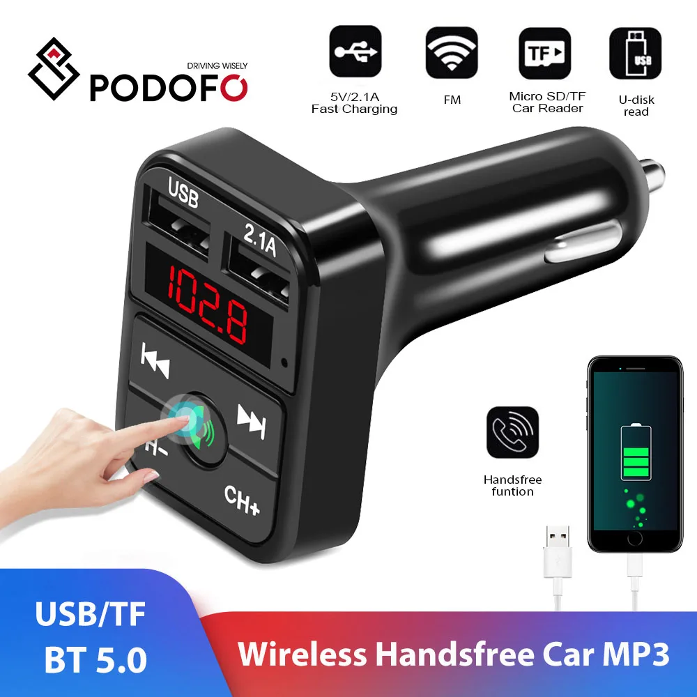 Автомобильный беспроводной MP3-плеер Podofo, Bluetooth 5,0, FM-приемник, быстрое зарядное устройство USB, универсальные автомобильные аксессуары