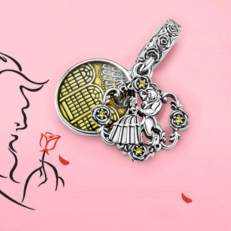 Женский браслет из серебра 925 пробы, с шармами Красавица и Чудовище