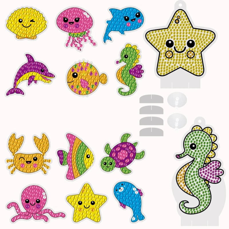 Алмазная живопись с большим драгоценным камнем, наклейки для детей, 5D, творчество своими руками, животное и морской мир, живопись с алмазами, краска по номерам для детей