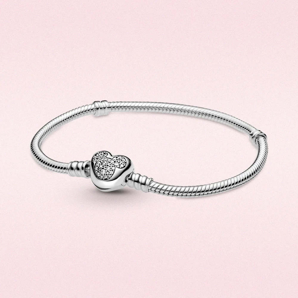 Браслет из серебра 925 пробы с застежкой в виде мыши и сердца