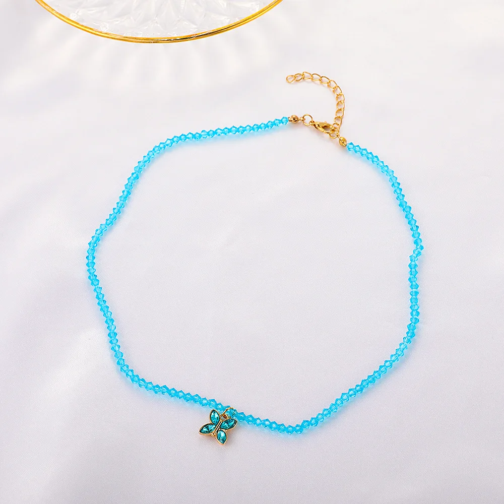 ZYZQ корейское ожерелье ручной работы из бисера для женщин милая Хрустальная Бабочка короткое ожерелье-чокер подарок на день рождения студенческие ювелирные изделия