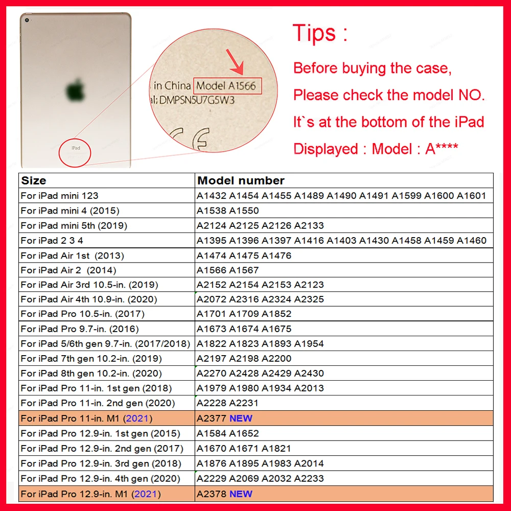 Номер моделиFor iPad Pro 11 2021 Air 4 3 10.5 7th 10.2 Mini 5 2019