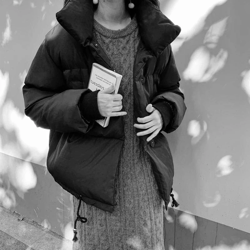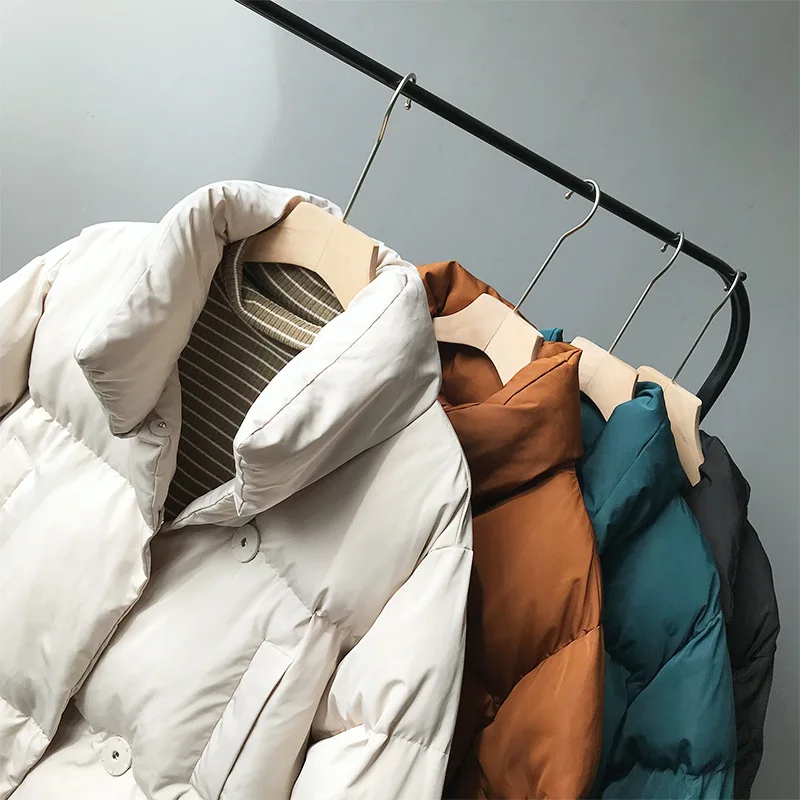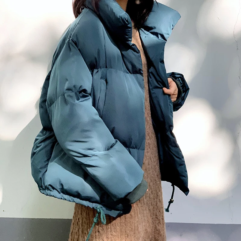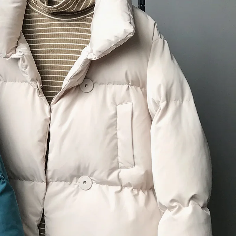 Пуховик женский зимний однотонный, оверсайз, с воротником-стойкой