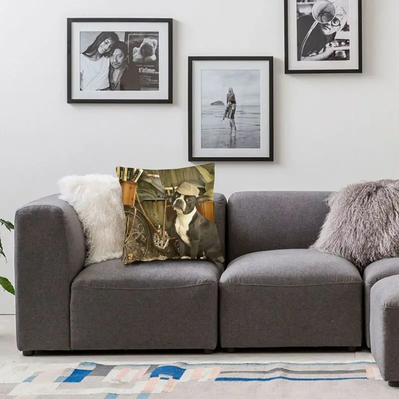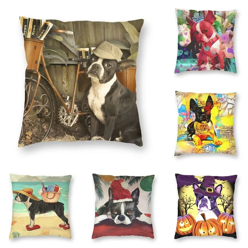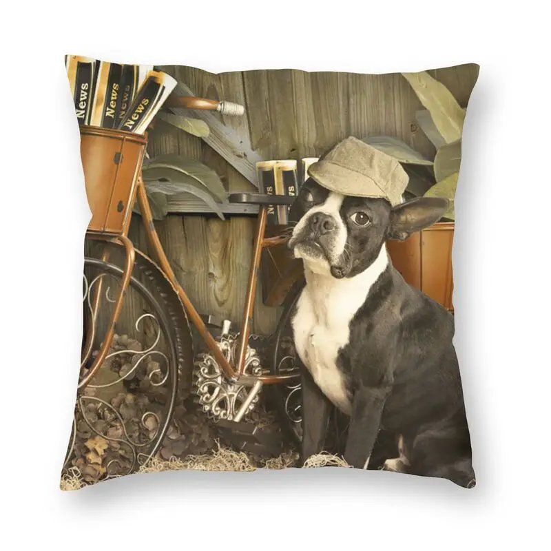 Наволочка для подушки в стиле ретро Бостон-терьер