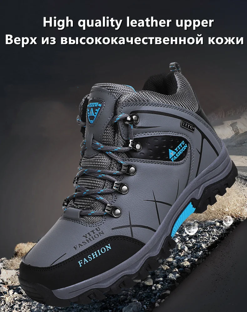 Мужские зимние ботинки, водонепроницаемые кожаные кроссовки, супер ...