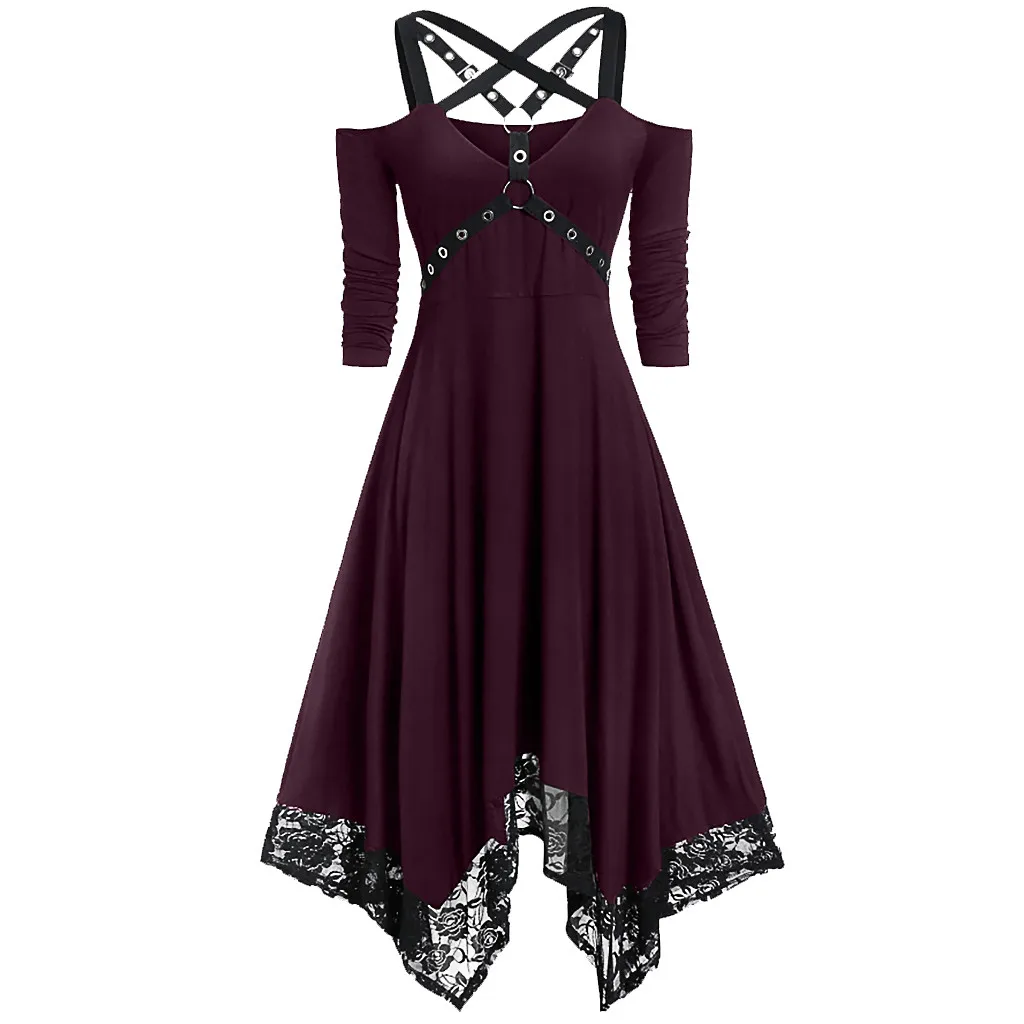 Женское сексуальное платье с открытыми плечами, платье в готическом стиле с открытыми плечами и рукавом до локтя, новинка 2021