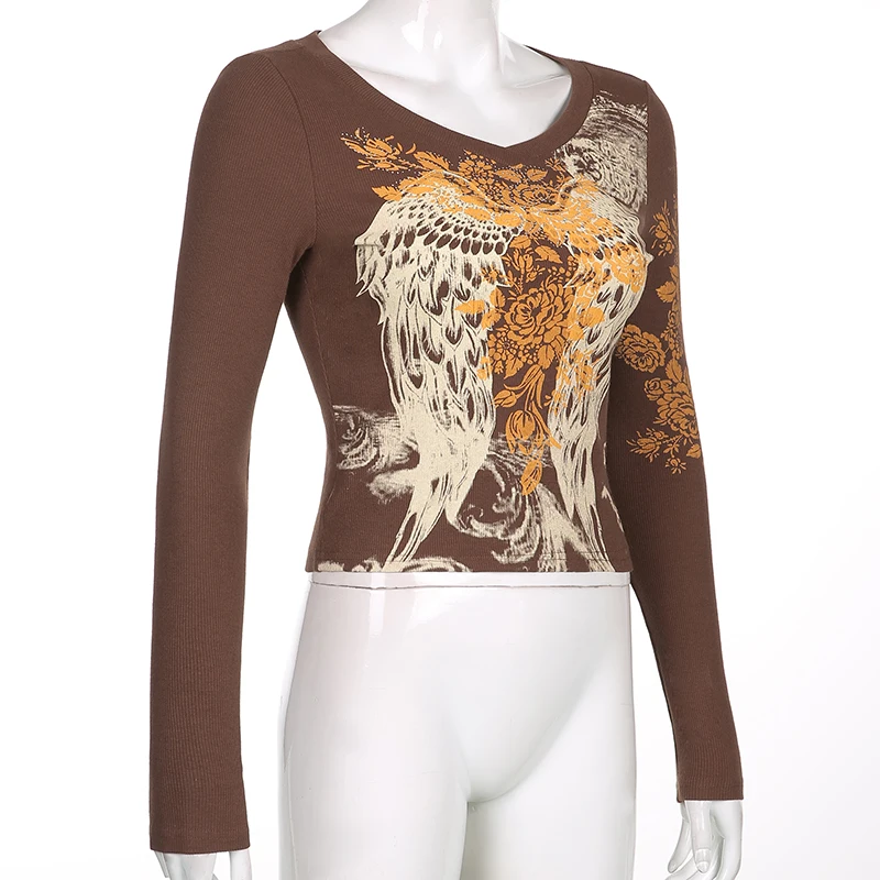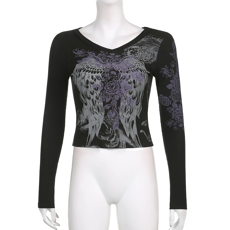 Xingqing топы с принтом крыльев Ангела Феи гранж Графические футбол...
