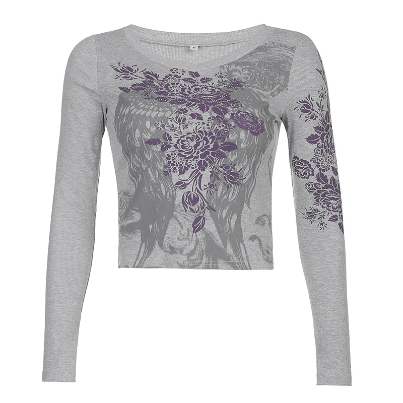 Ретро гранж футболки Fairycore Harajuku графический принт серые мил...