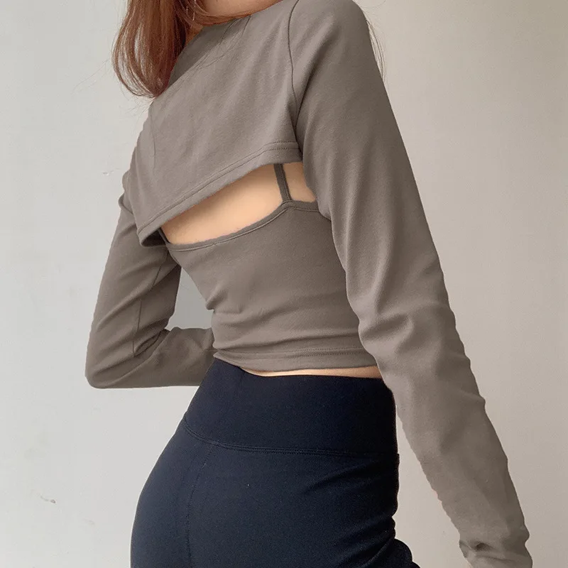 Сексуальная футболка с вырезами и короткий топ на бретельках для же...