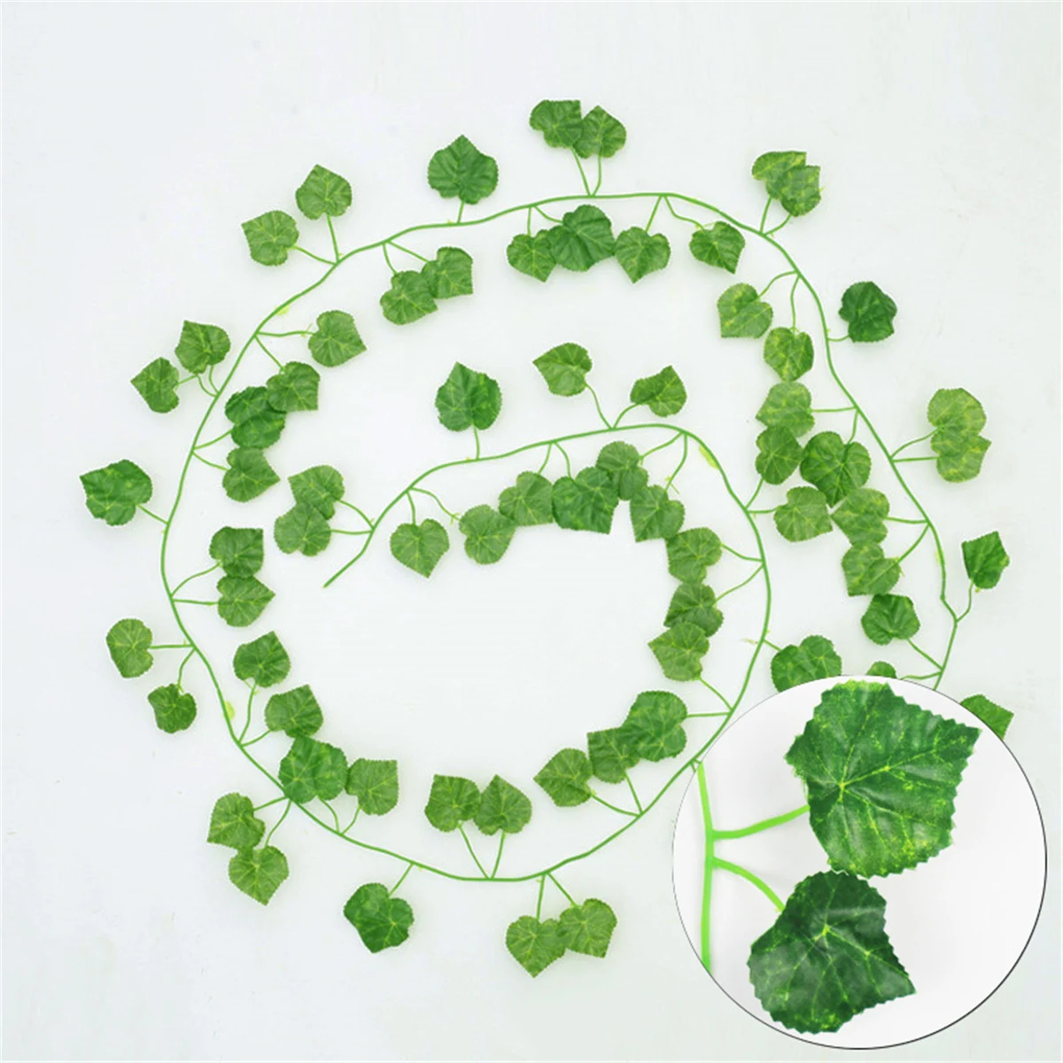 Размер искусственных лозКаждый плющ составляет около 78,7 дюймов/2 м в длину, большой размер листа: прибл. 4,5 см x 4,5 см/1,77 "× 1,77", небольшая листовая Размер: прибл. 3,5 см x 3,5 см/1,37 "× 1,37". . Висячие листья изготовлены из шелка, а стебли-из пластика.