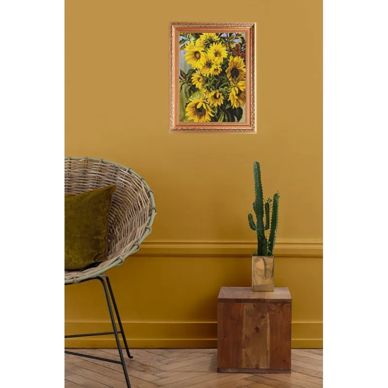 После завершения работы поместите картину в рамку размером 30*40. Готовый Блестящий шедевр надолго порадует вас сиянием и переливающимися гранями камней.