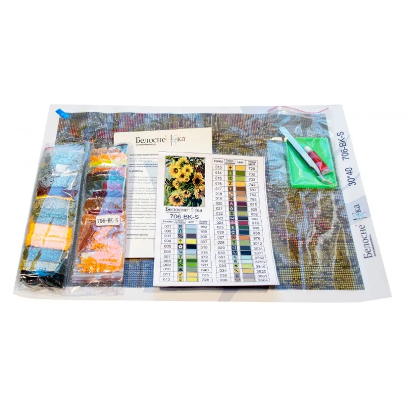В комплект входит набор искусственных камней с огранкой двух типов 9 и 13 граней из композитного полимерного материала на основе эпоксидной смолы. Камни упакованы по цветам в пакеты с застежкой-молнией посылка вке есть наклейка с номером, цветом ячейки и символом, как на схеме. Камни оптимально размещаются в квадратах схемы, без лишних зазоров и пропусков.