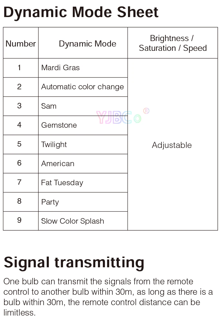 Рабочее напряжение: 3 в (батарея AAA * 2 шт.)Мощность передачи: 6 дБмМощность в режиме ожидания: 20μARF: 2,4 ГГцРасстояние управления: 30 мРабочая температура: -10 ~ 40 ℃