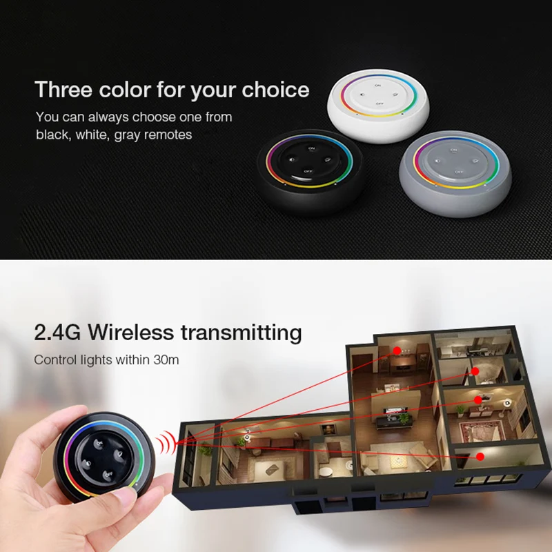 Miboxer 2,4G Радужный пульт дистанционного управления RGB + CCT светодиодный контроллер круглый белыйчерныйсерый диммер светильник RGB + CCT светодиодный выключатель лампы