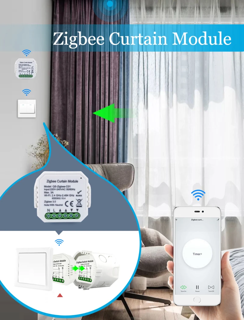 Модуль переключения занавесок Tuya Zigbee для роликовых жалюзи, двигатель для умного дома, голосовое управление, Google Home Alexa
