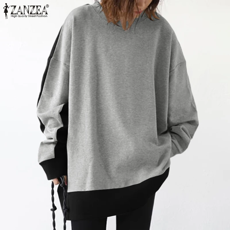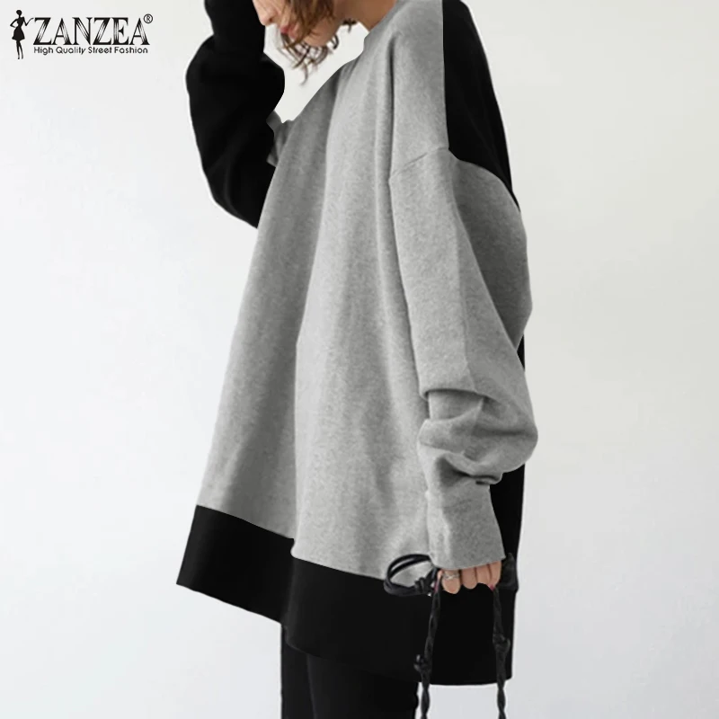 Модные осенние топы ZANZEA 2022, женские свитшоты в стиле пэчворк, Повседневные пуловеры с длинным рукавом, женские блузы с круглым вырезом, толстовки в стиле оверсайз