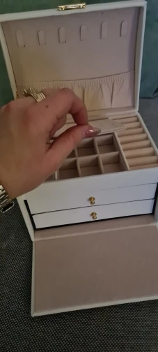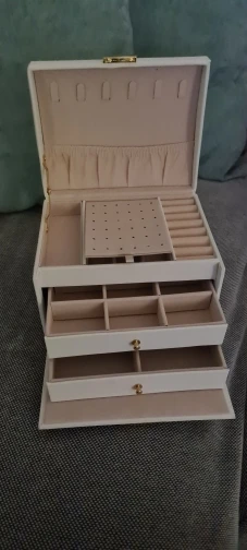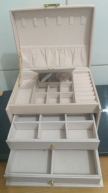 Коробка для ювелирных изделий точно такая же, как в описании. Материал отличного качества, очень хорошо сделан, каждая деталь внутри-замша, деликатная и идеально подходит для хранения колец, ожерелий, сережек, браслетов и т. д. Ящики отлично подходят для разделения ювелирных изделий с перегородками. Очень красиво. Очень хорошая ручка для удержания и зарядки. Прибыл быстро и хорошо упакован. Рекомендуется.