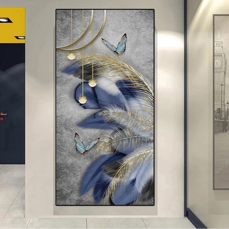 Современная Скандинавская живопись перьями на холсте, настенные худ...
