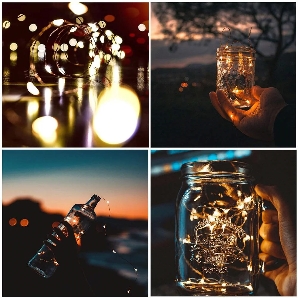 Светодиодная гирлянда на Пробковую бутылку с питанием от батарейки AA, 10 шт.лот, 2 м, Рождественская сказочная гирлянда из медной проволоки, праздничная декоративная лампа