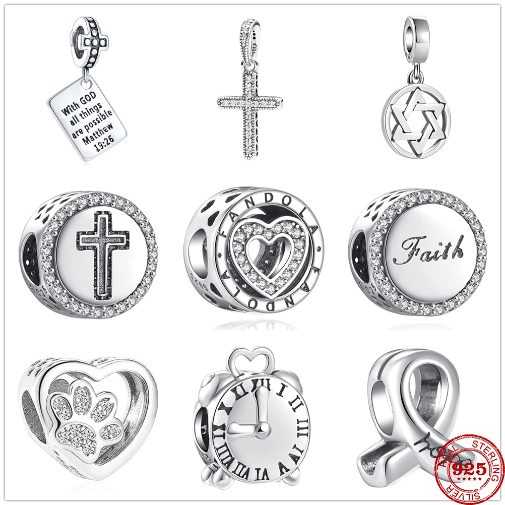 Новый Будильник из стерлингового серебра 925 пробы с надписью "Cross Hope" Амулет лапа "сделай сам" Изящные бусины подходят для оригинальных браслетов Pandora с подвесками для женщин ювелирные изделия