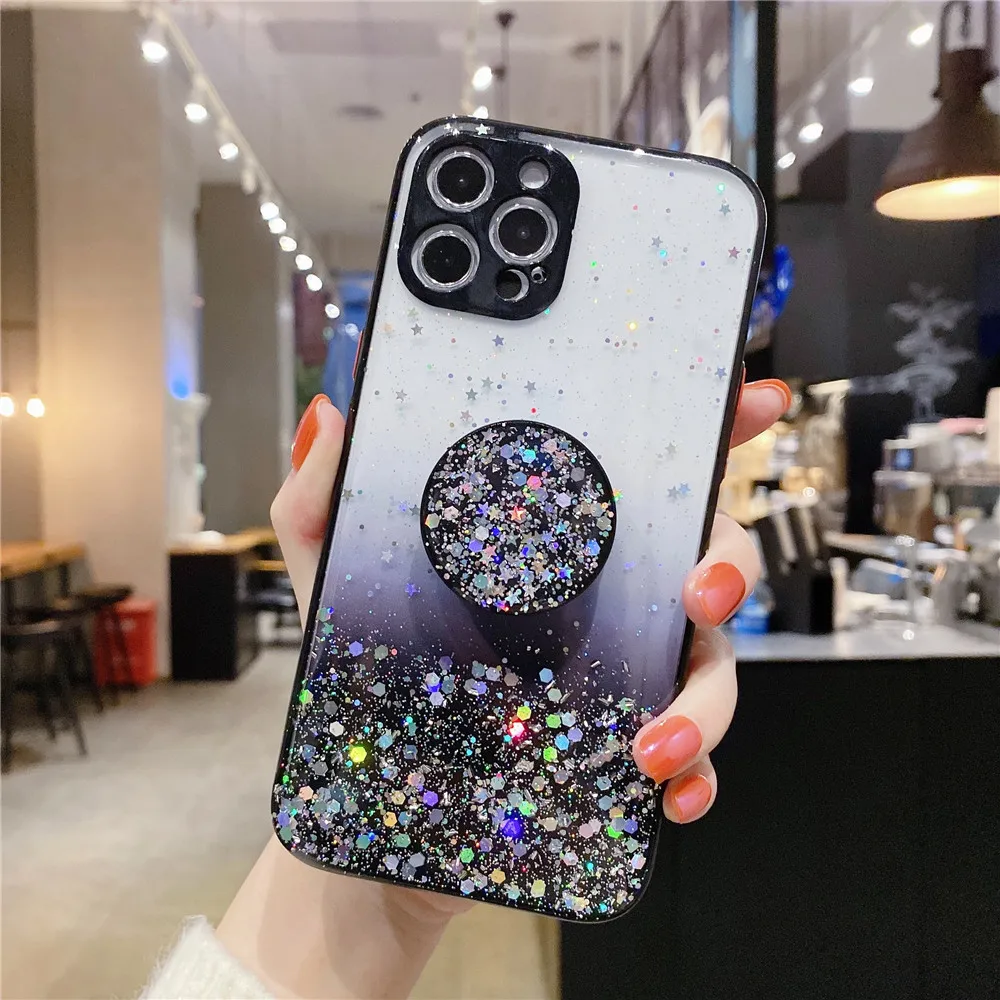 Блестящий чехол-подставка для Xiaomi Redmi 9C NFC 9A 9T Note 9 Pro Max 9S, силиконовый прозрачный чехол с блестками для защиты объектива
