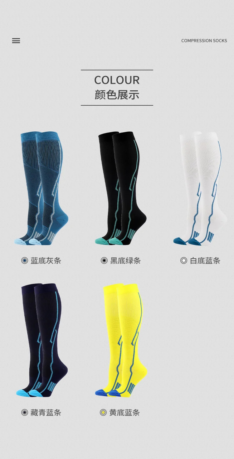 HYSAIXIA для мужчин и женщин, мужские Компрессионные носки, много цветов, марафонские спортивные носки для тренажёрного зала, компрессионные чулки, подходят для медицинского отека, диабета