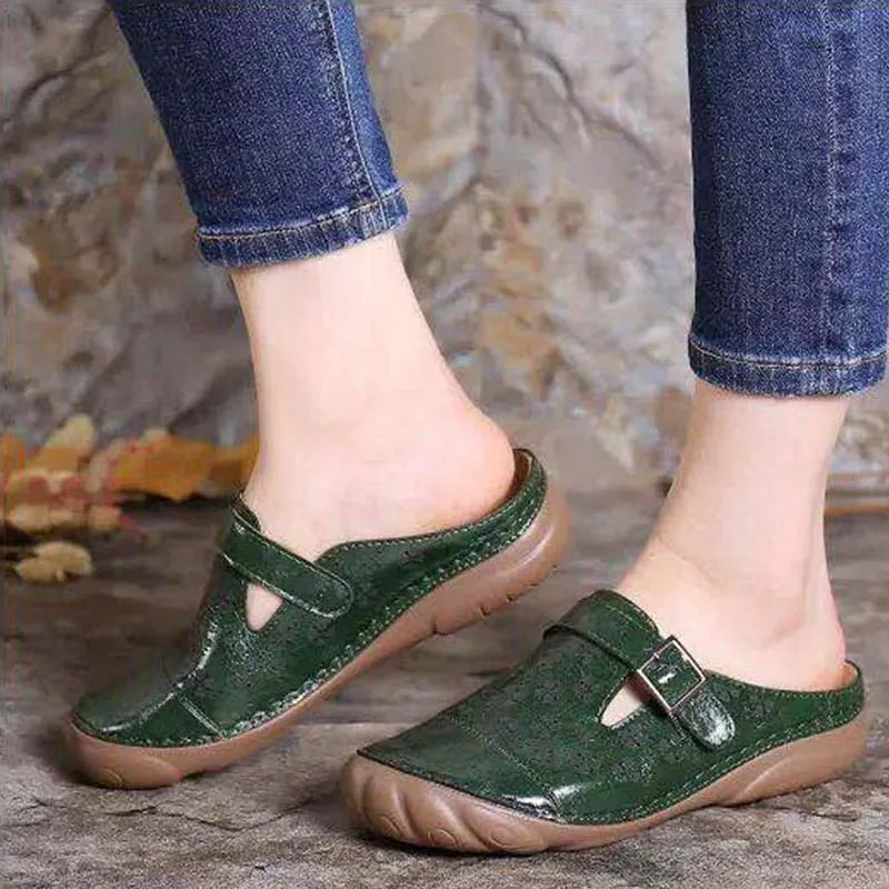 Сандалии женские ортопедические на платформе, босоножки из дышащей кожи, с открытым носком, с пряжкой, повседневная обувь в ретро стиле, лето 2021