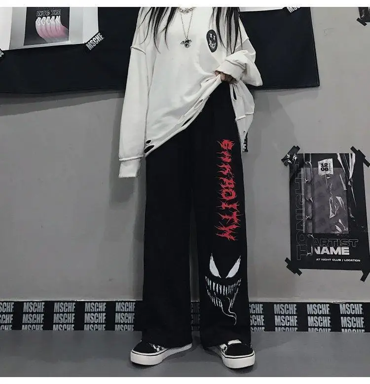 Брюки женские, в стиле Харадзюку, с японским рисунком, в стиле хип-...