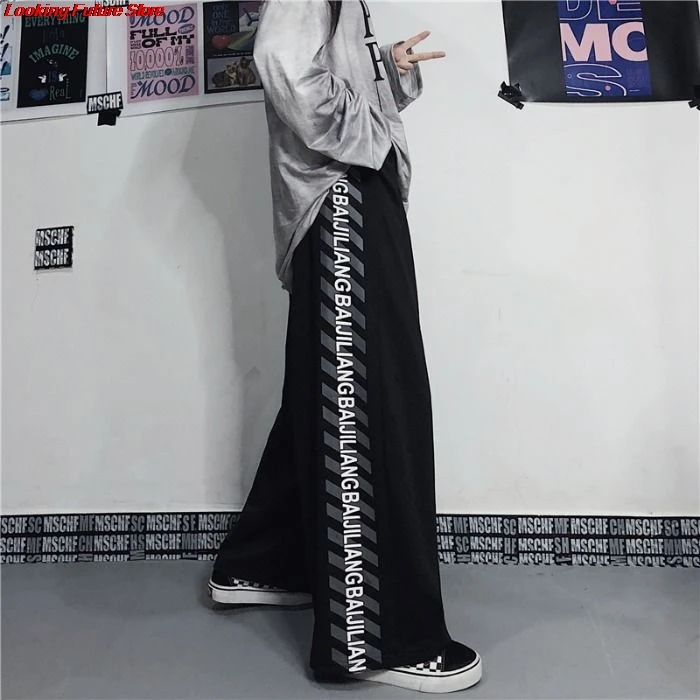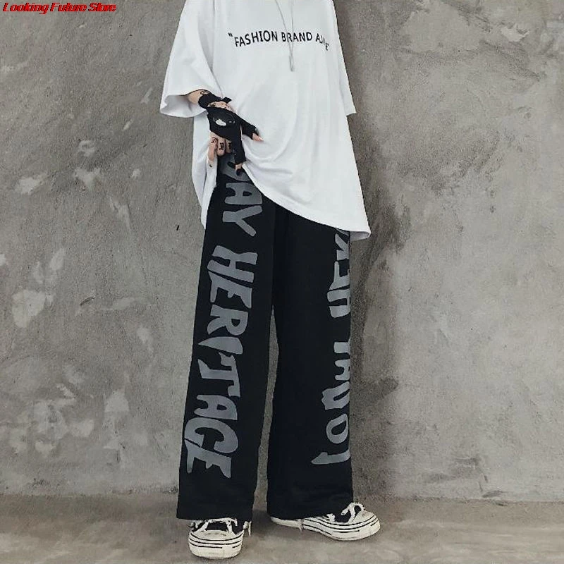 Ретро темные спортивные брюки в стиле Харадзюку в стиле хип-хоп для...