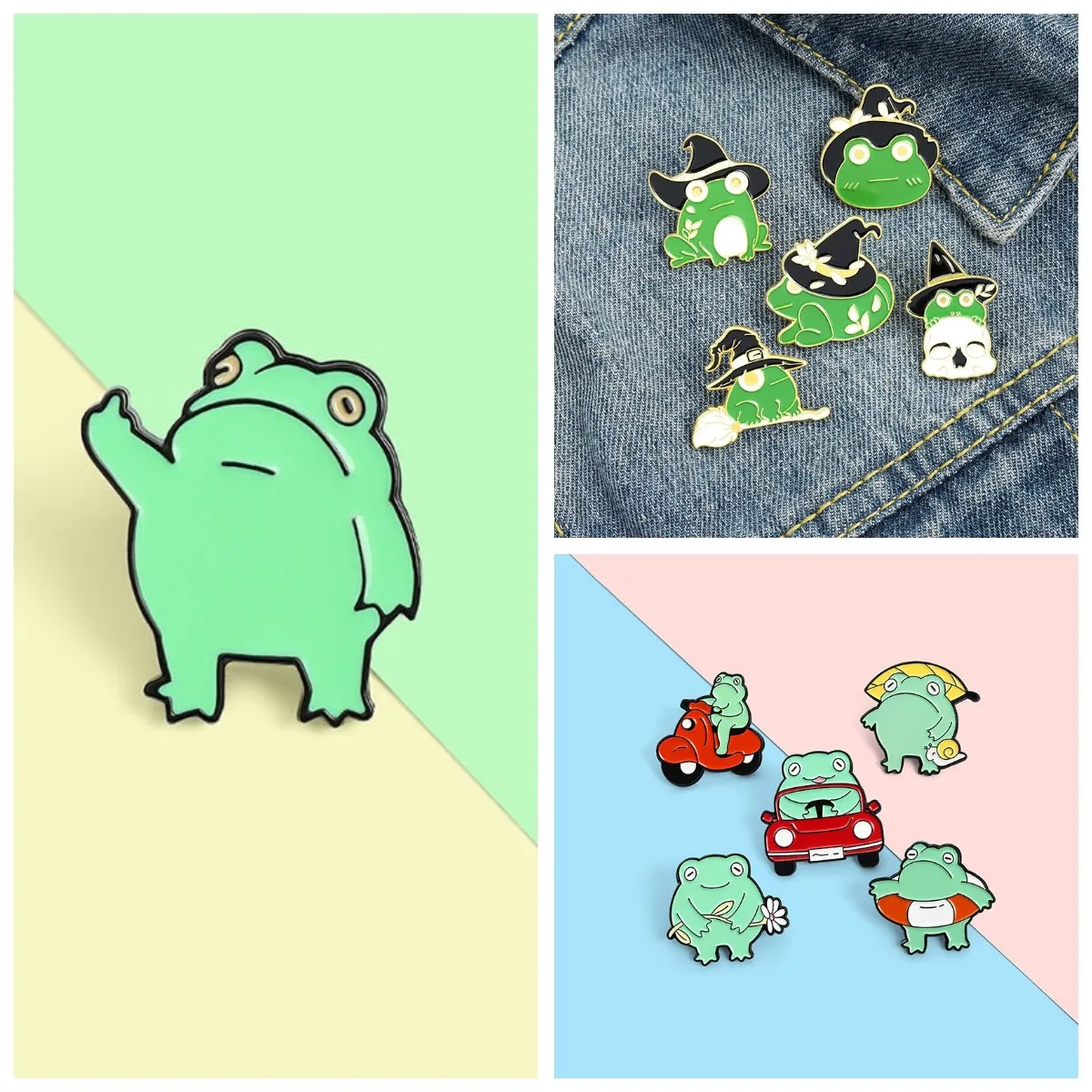 Металлический значок Броши лягушка в виде животного, Милый Забавный эмалированный значок из денима для сумок и лацканов, ювелирное украшение в подарок для друзей