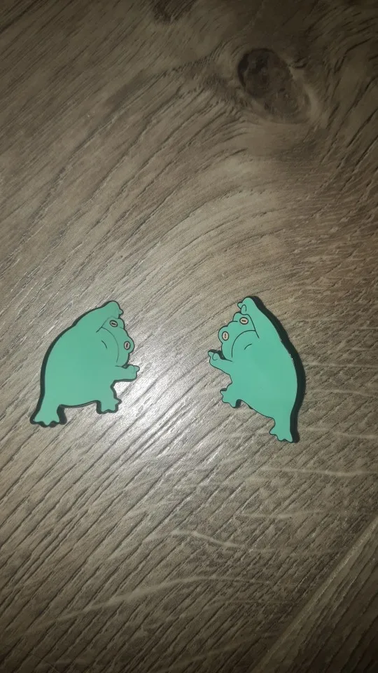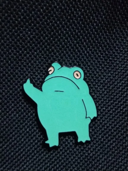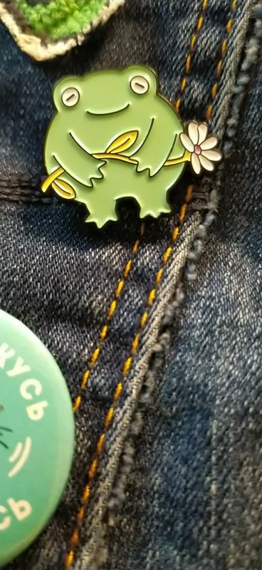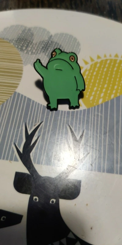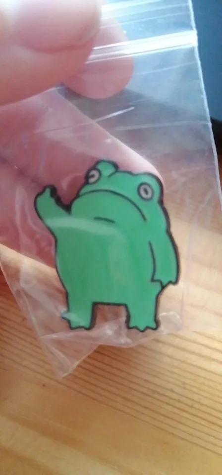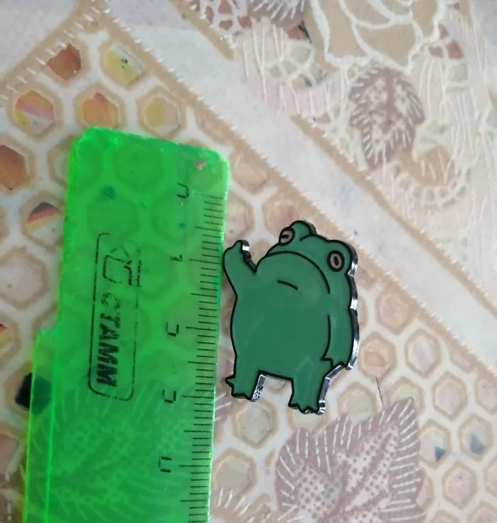 всё гуд. красивый, нежный и яркий значок. Царапин и потертостей нет. Нанесение качественное Теперь у меня есть лягушечка)
