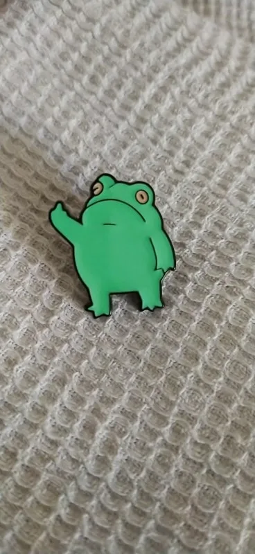 хороший значок, пришёл довольно быстро, яркий, застёжка крепкая, бесплатная доставка, лягушка прикольная, вообщем (и целом) советую заказывать!