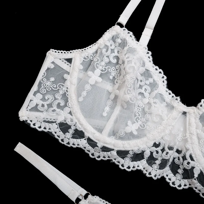 Сексуальный женский комплект нижнего белья с цветочной вышивкой, го...