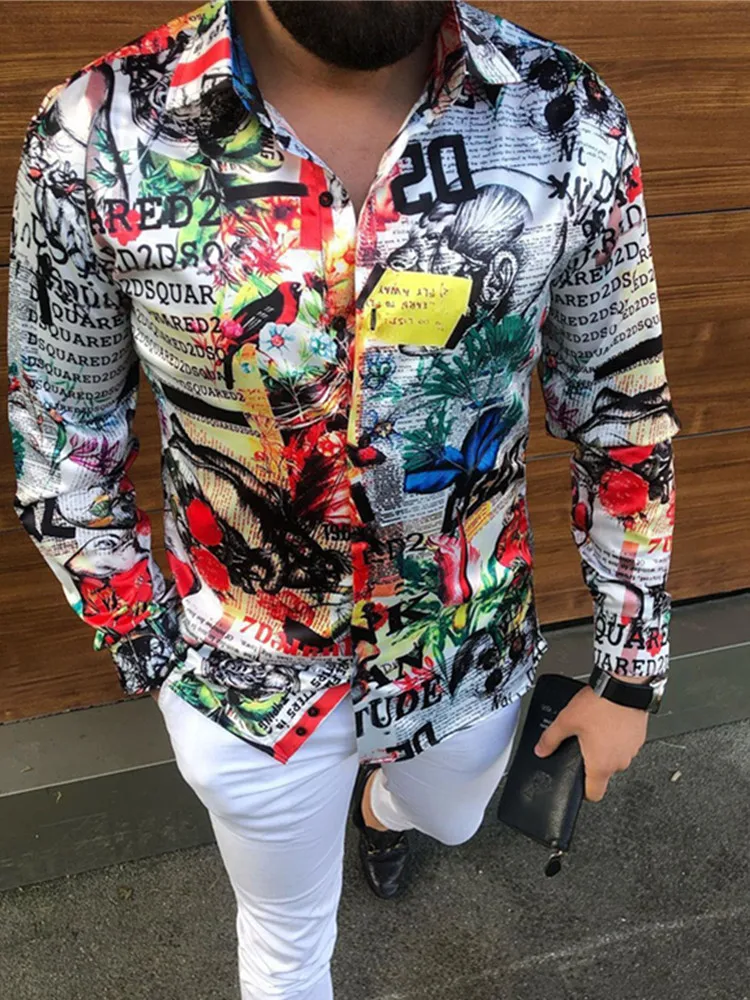 Новая модная мужская рубашка в стиле барокко с лацканами и пуговица...