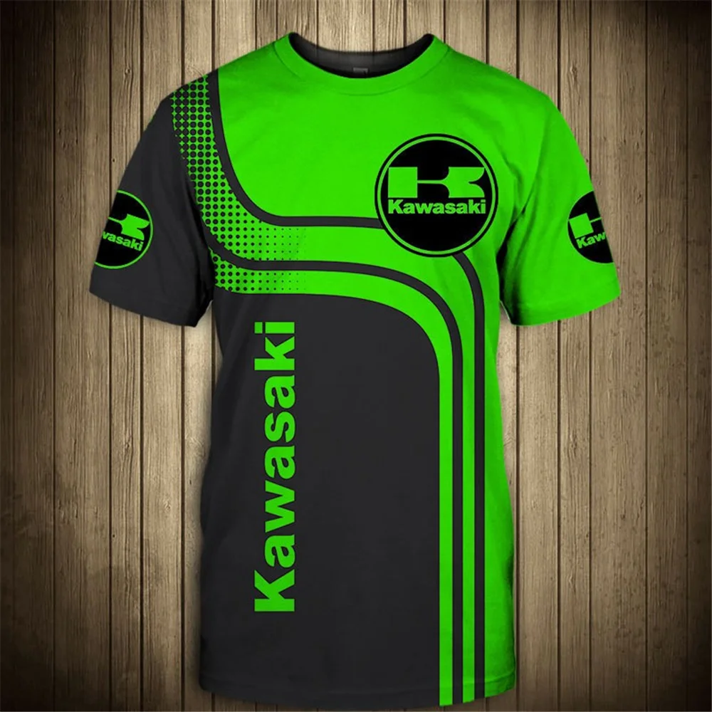 Летняя новая крутая модная футболка Kawasaki, футболка для мотогоно...
