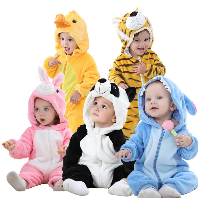 Милые Мультяшные фланелевые детские комбинезоны, лиса, корова, крол...