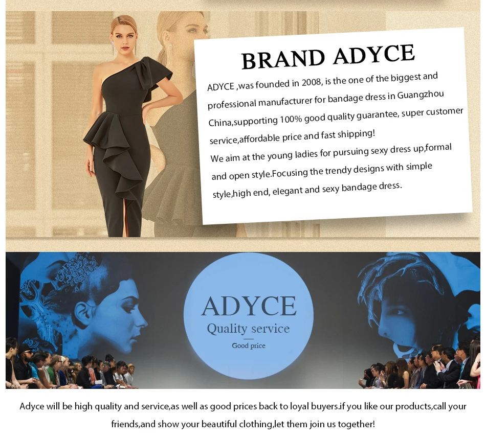 Наш бренд ---ADYCE, Была основана в 2008 году, мы являемсяПрофессиональный производитель для бандажного платья фабрикаВ Гуанчжоу Китай, поддержкаOEM/ODM/оптовые продажи/Розничная торговля/дропшиппинг/смешанный заказ, 100% гарантия хорошего качества, разумная цена, лучшее предпродажное и послепродажное обслуживание, быстрая доставка!